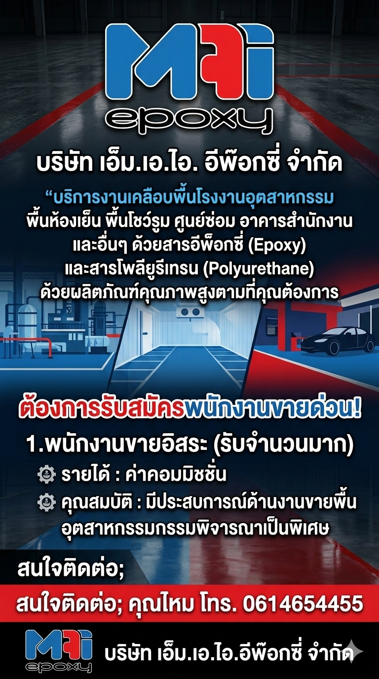 บริษัท เอ็ม.เอ.ไอ. อีพ๊อกซี่ จำกัด “ บริการงานเคลือบพื้นโรงงานอุตสาหกรรม พื้นห้องเย็น พื้นโชว์รูม ศูนย์ซ่อม อาคารสำนักงาน